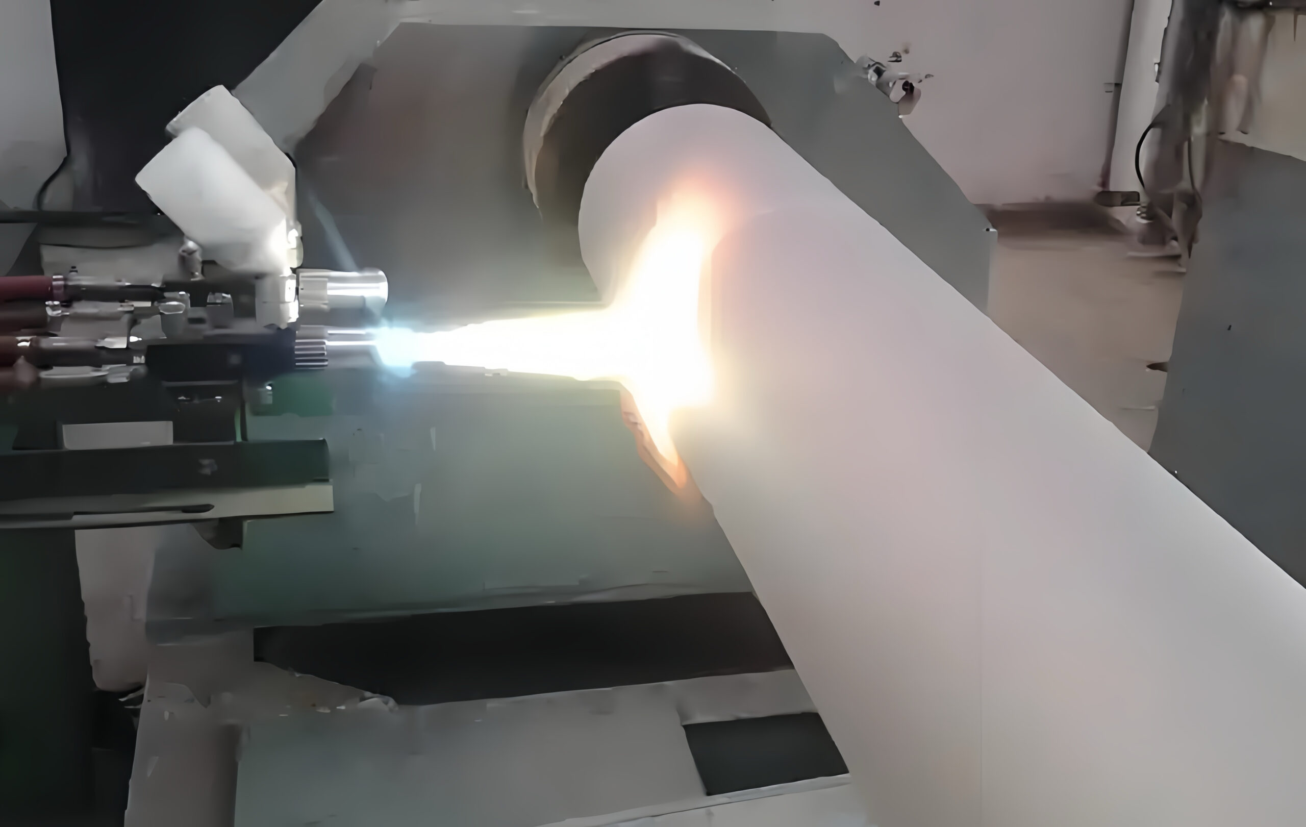 高温・高速のプラズマ炎流中に材料粉末を投入し、溶融または半溶融状態にして基材表面に衝突・積層させることで被膜を形成します。