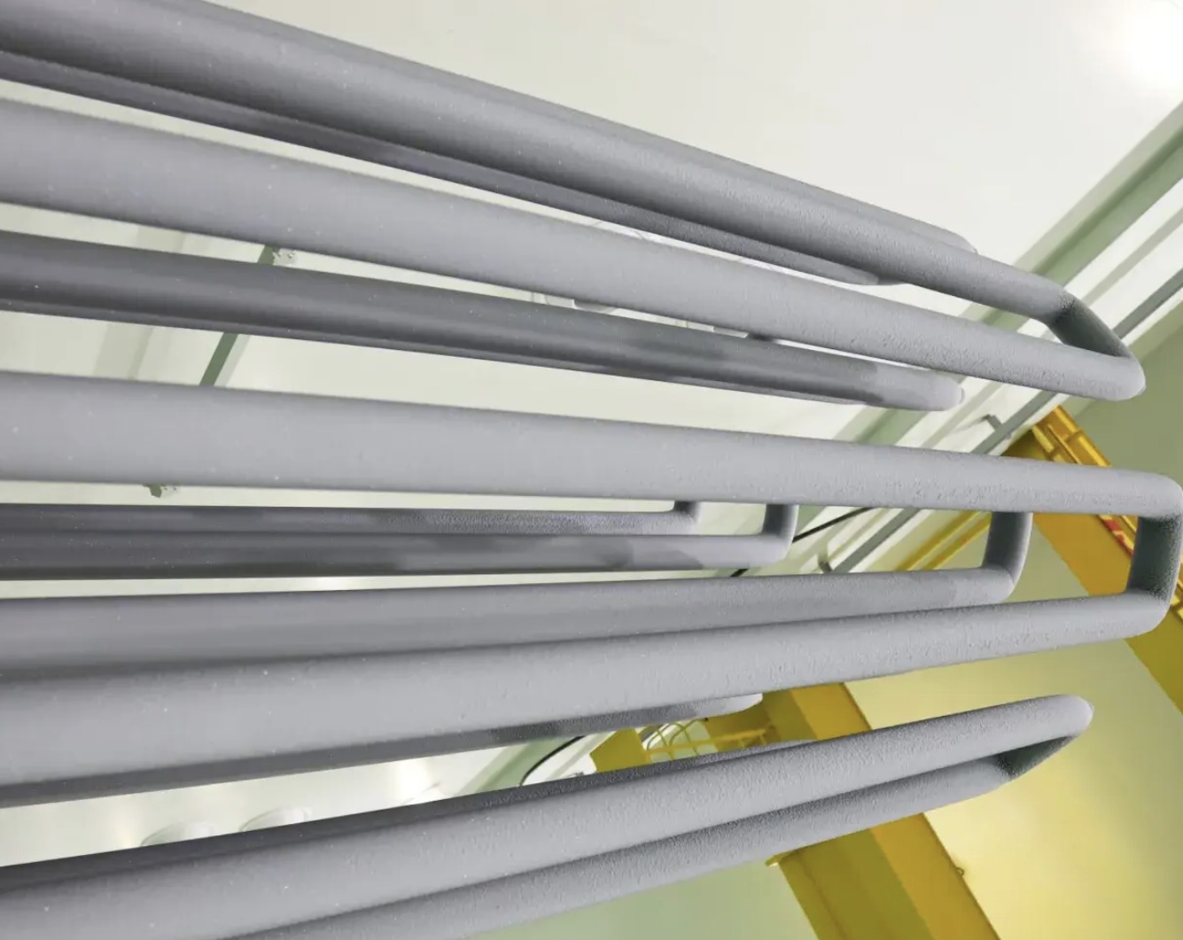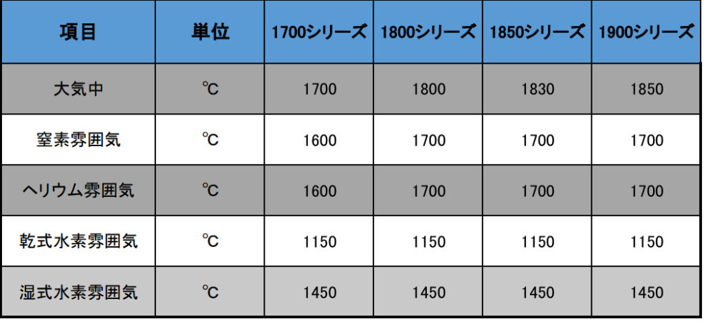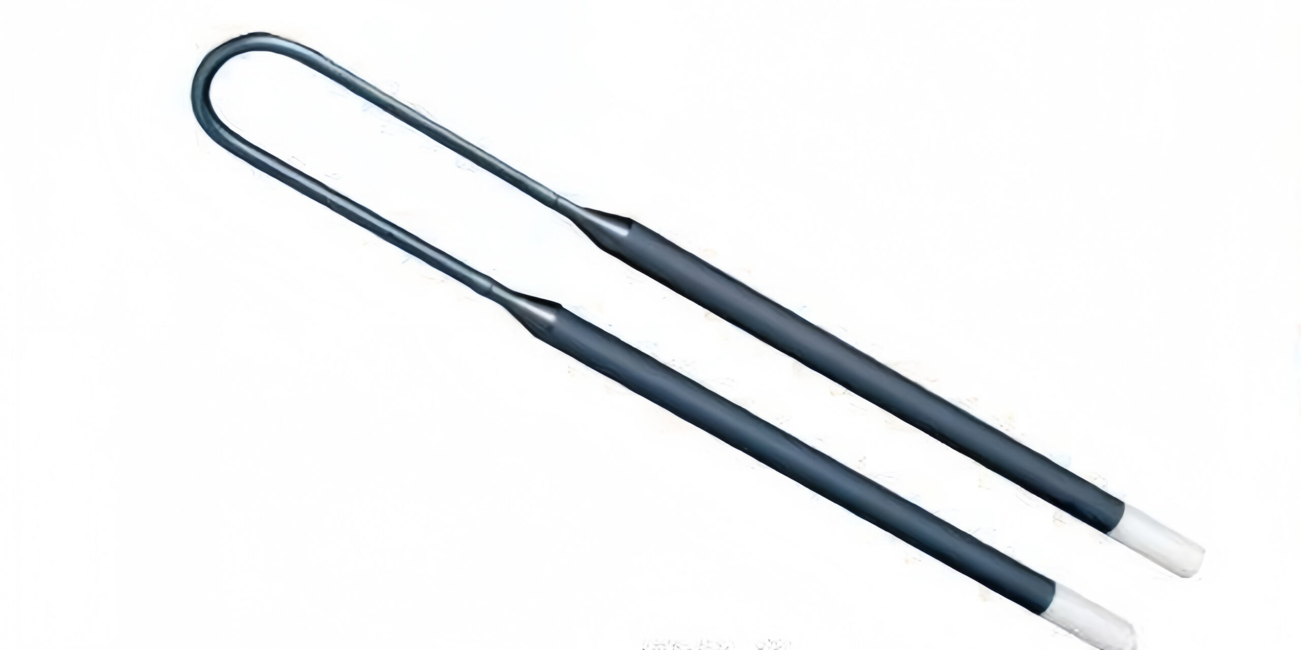 二硅化モリブデン(MoSi2)発熱体は、酸化性雰囲気における最高使用温度が1800℃ と、非常に高い耐酸化性と耐熱性を兼ね備えた発熱体です。使用時に表面に緻密なシリカ(二酸化ケイ素)ガラス被膜を形成する自己修復機能により、空気中や酸素を含む雰囲気での長時間使用を可能にしています。